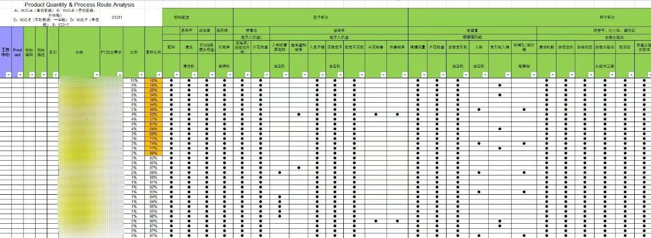Чрез PQPR (Product Quantity Process Routing) анализ, екипът идентифицира разликите в процесите между различните продукти, класифицира продуктите и подреди производствените линии рационално, за да подобри ефективността на производството.