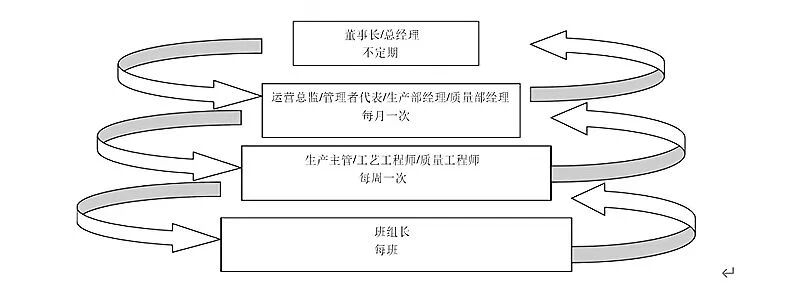 Основното за бързото прилагане на „Трите съответстващи и две придържания“ се крие в изпълнение. Специфичният метод за управление, необходим за изпълнение на място, е слоест одит на процеса (LPA). С LPA като основен инструмент бяха проведени цялостни подобрения, фокусирани върху 5M1E (човек, машина, материал, метод, среда, измерване) в инсталационния работилница. „Слоевият одит на процесите“ е предназначен да ангажира всички служители в прегледа на „Трите съответствие и две придържания“, повишава качествената осведоменост на целия персонал и помага да се установи мислене и насоки, основани на рамката за действие в следващите дейности за подобряване.