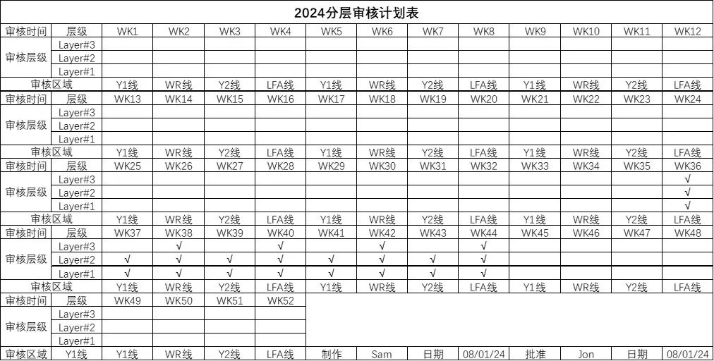 Първо, като се има предвид дългата продължителност на инициативата за подобряване и желанието за по -добро демонстриране на ефективността на подобренията, е необходимо да се планира дейностите и да се формулира слоест график на одит на процесите. Въпреки че е сравнително лесно да се коригира LPA за инженерите, може да бъде трудно временно да планирате времето за висшите лидери да участват в LPA. Следователно планът за одит е от съществено значение и трябва да бъде издаден предварително.