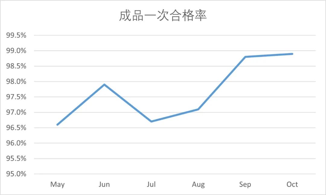 Чрез прилагането на тази инициатива за подобряване на качествения месец, информираността за качеството на всички служители е значително подобрена и показателите за качеството са значително подобрени. По -конкретно, дефектите, свързани с фактора на „човека“ в 5M1E, са значително намалени; Скоростите на липсващи инсталация, грешна инсталация и смесена инсталация са намалели значително; Потенциалните опасности от качеството в съответните процеси са значително намалени; и оперативното качество на процесите е непрекъснато оптимизирано. В резултат на това добивът на първи проход и завършването на квалификацията с първи проход са се увеличили с 1-2%, докато оплакванията на клиентите и възвръщаемостта на продукта са намалели значително. Тези очевидни подобрения в данните напълно демонстрират ефективността и стойността на инициативата за подобряване.