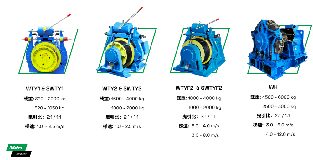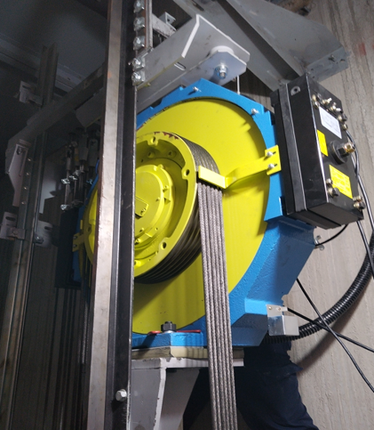 • Приема блокови спирачки и структура с двойна опора в дизайна, с капацитет на аксиално натоварване от 15T, осигурявайки по-стабилна и надеждна цялостна работа на машината; може да отговори на транспортните изисквания на различни индустриални паркове и напълно да задоволи нуждите на индустриалните асансьори.