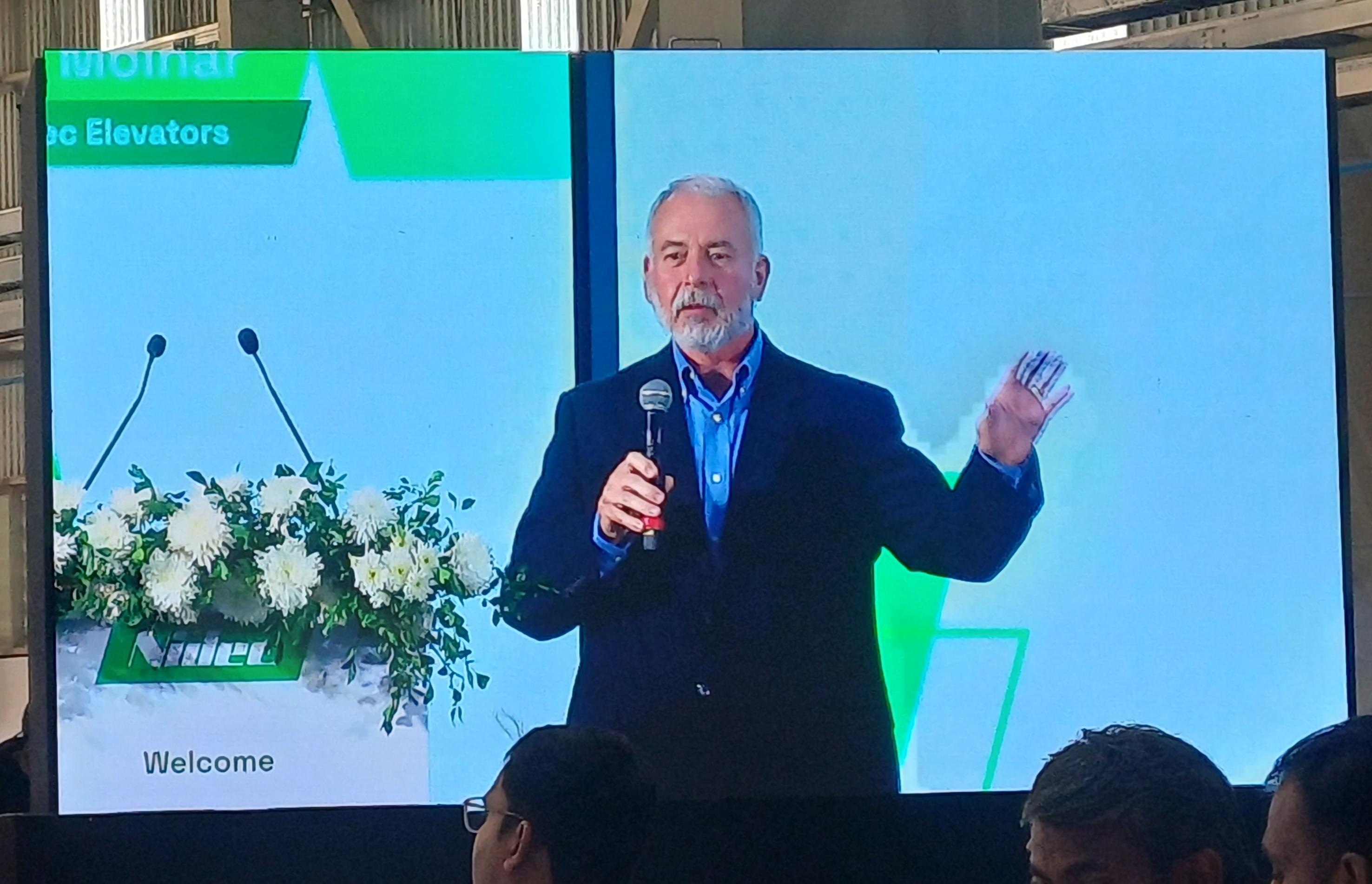 Фигура 8 Г-н Дейвид Молнар, вицепрезидент на NIDEC Elevator, обръщайки се към церемонията