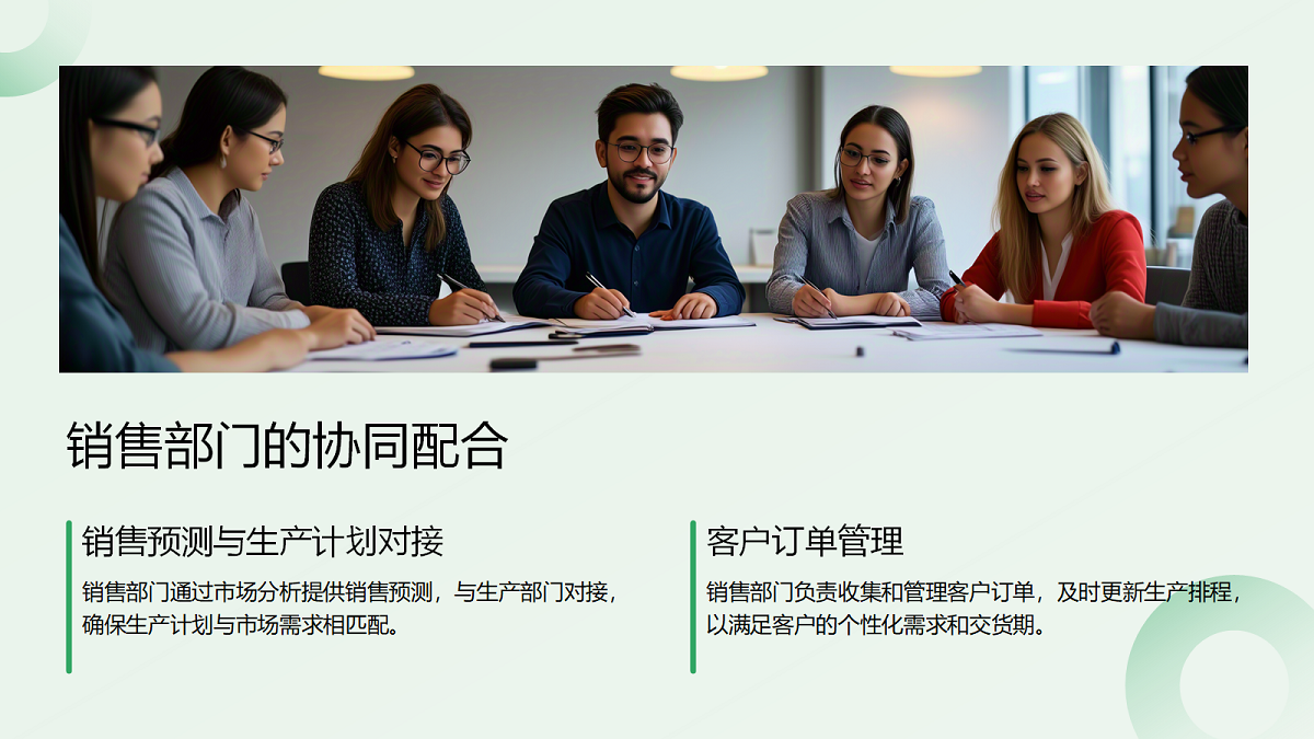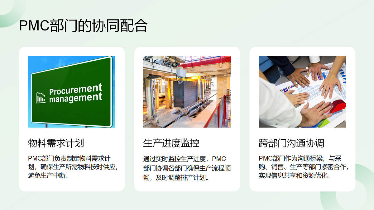 Прилагането на балансирано производствено планиране е неделимо от съвместното сътрудничество на отдели като продажби, инженеринг, управление на веригата за доставки, доставки, производство и логистика. Това сътрудничество е основната логика на бързата реакция, а ключовото ядро на бързата реакция се крие в обратната информация и комуникацията, както и непрекъснатото задълбочено подобряване на цикъла PDCA (Планиране-Направяне-Проверка-Действие).