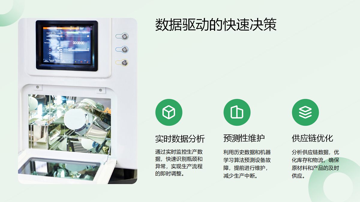 • Бързо вземане на решения въз основа на данни: Вземете решения за бърза реакция чрез анализ на данни в реално време, предсказуема поддръжка и оптимизиране на веригата за доставки.