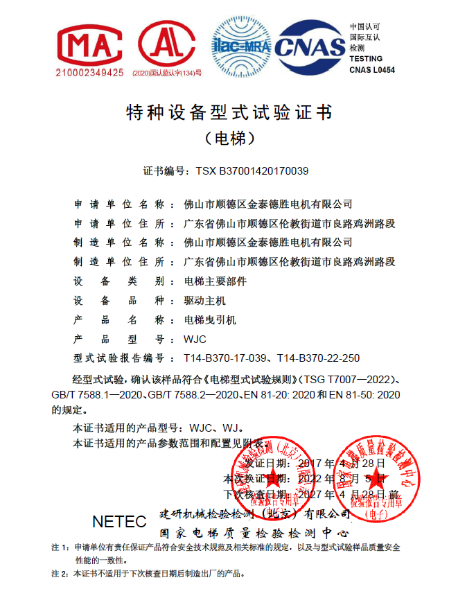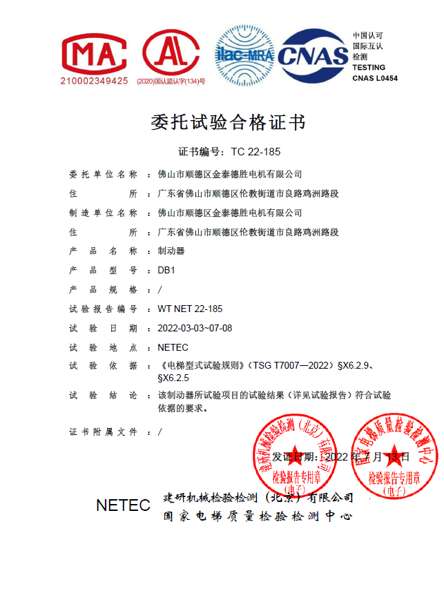 1. Сертифициране на тестови тестове за специално оборудване в Китай: включително тест за основен тип на двигателя, защита на автомобила нагоре надвиснала и сертифициране на устройството за защита на движението, обхващащо сертифицирането на всички серии от нашите основни двигатели. В същото време той може да предостави и бързо сертифициране за поддръжка на услуги за цялостни клиенти на асансьора.