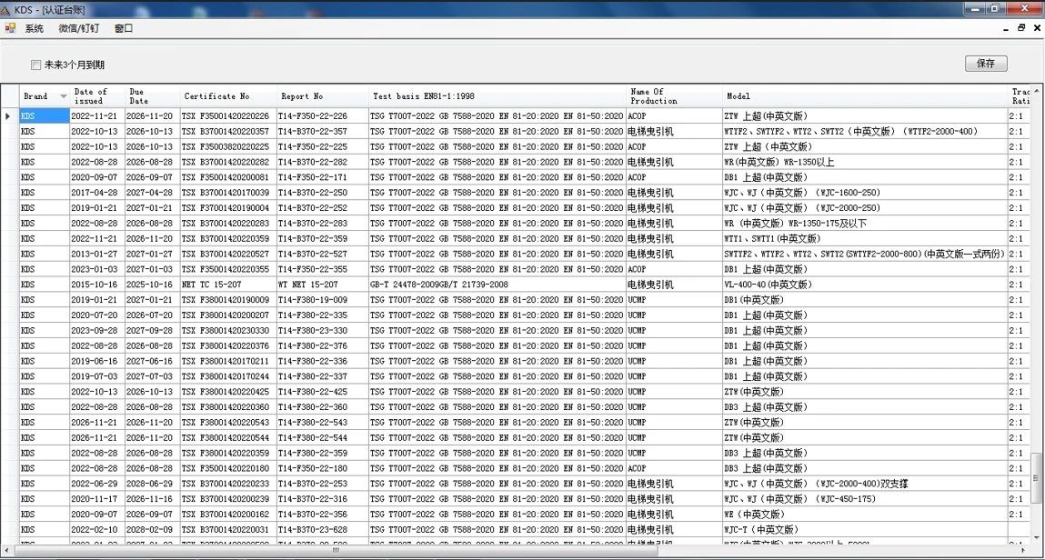 Всички сертификати за сертифициране на продукти на NIDEC Elevator Motors се въвеждат в системата за управление на сертифициране на продукти за унифицирано управление. Системата за управление на сертифицирането провежда управление на пълен процес от регистрацията на продукти за първоначално сертифициране за проверка и подновяване на сертификатите по време на техния жизнен цикъл и едновременно следи периода на валидност на всеки сертификат в реално време. Той предоставя навременна ранна предупреждение 4 месеца преди изтичането на сертификат, което гарантира непрекъснатата валидност на сертификатите за сертифициране на продуктите.