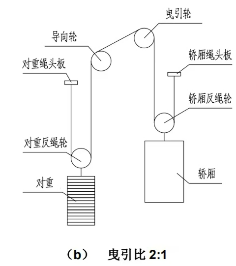• Коефициент на безопасност на стоманените въжета: Съгласно изискванията в раздел 5.12 от новия стандарт GB/T 7588.2-2020, факторът за безопасност на стоманените въжета (SF) трябва да бъде преизчислен. Ако коефициентът на безопасност на стоманеното въже е недостатъчен, могат да се вземат предвид корекциите, като например промяна на формата на жлеба на сцеплението, намаляване на броя на завоите и избягване на обратни завои.